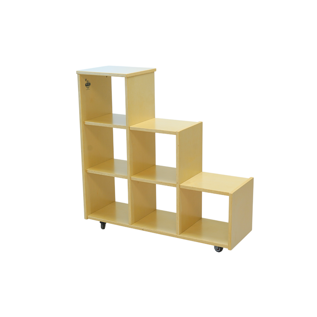 - Six spacious open cubes for storing toys, books, puzzles, and resources