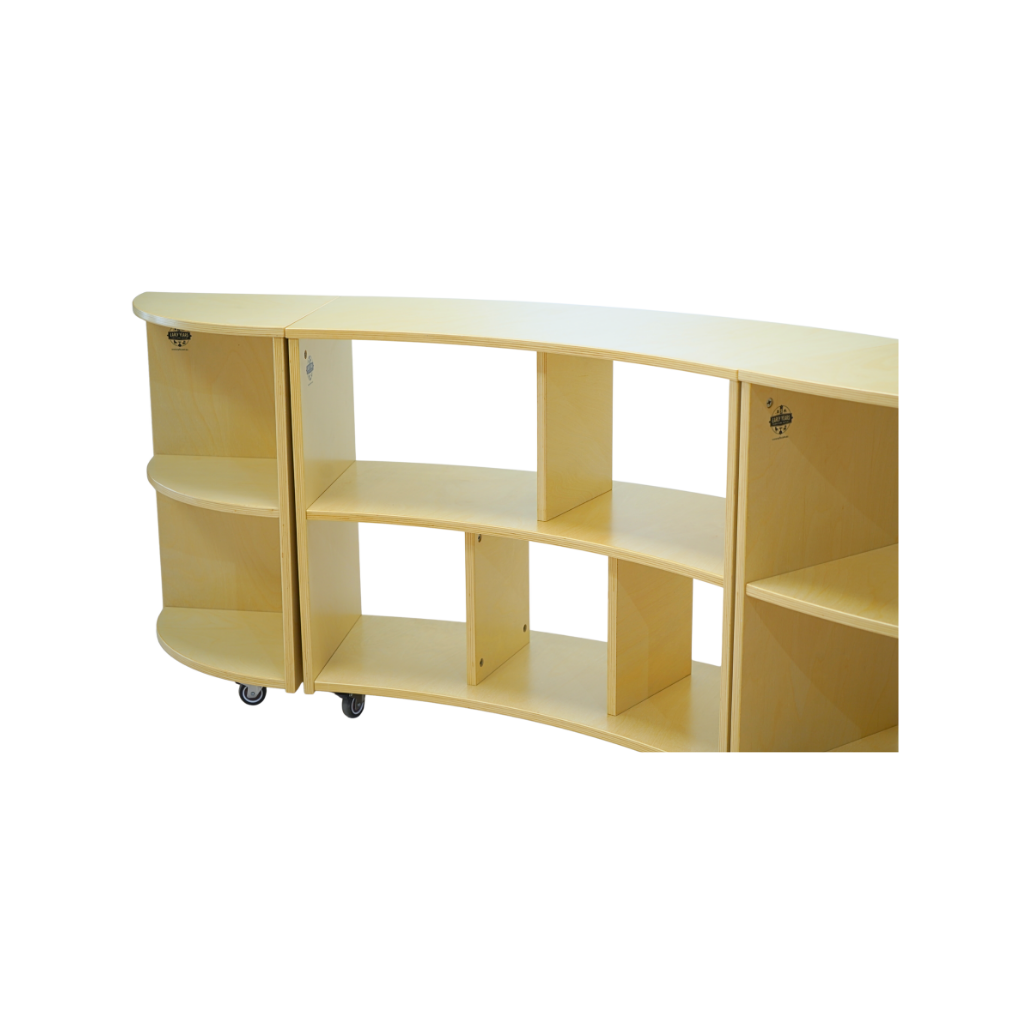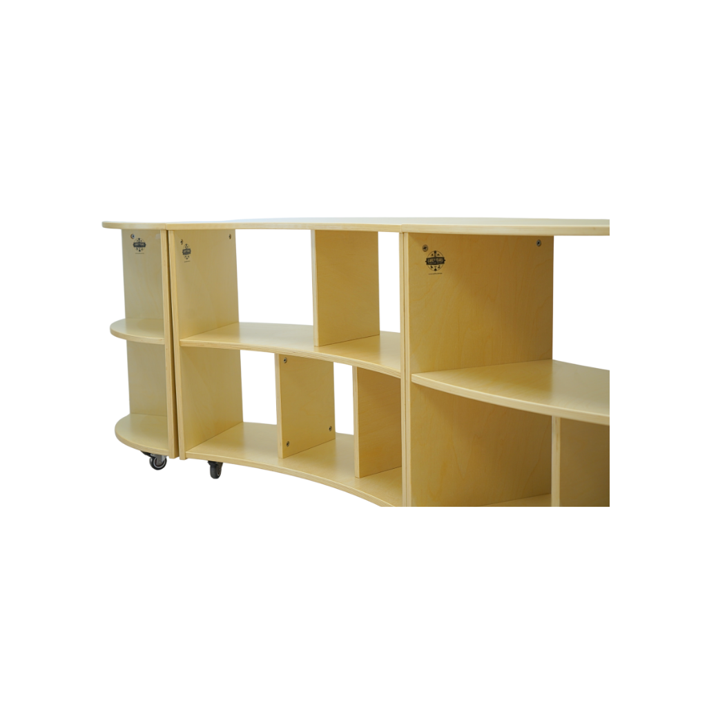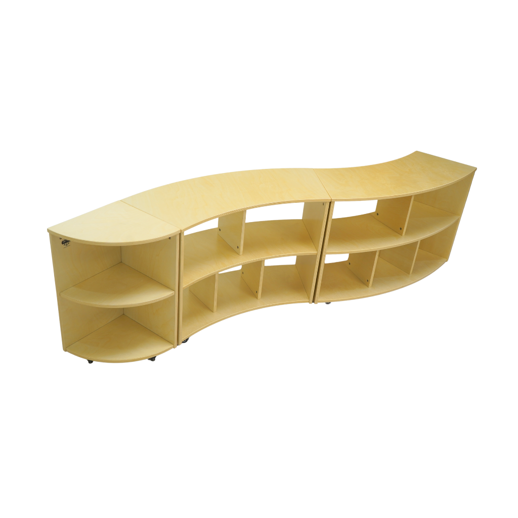 Crafted from durable 18mm birch plywood with a child-safe clear finish, this modular unit combines strength and natural beauty. Its curved design creates gentle boundaries that support zoning without harsh lines, helping to establish calm, purposeful play areas.