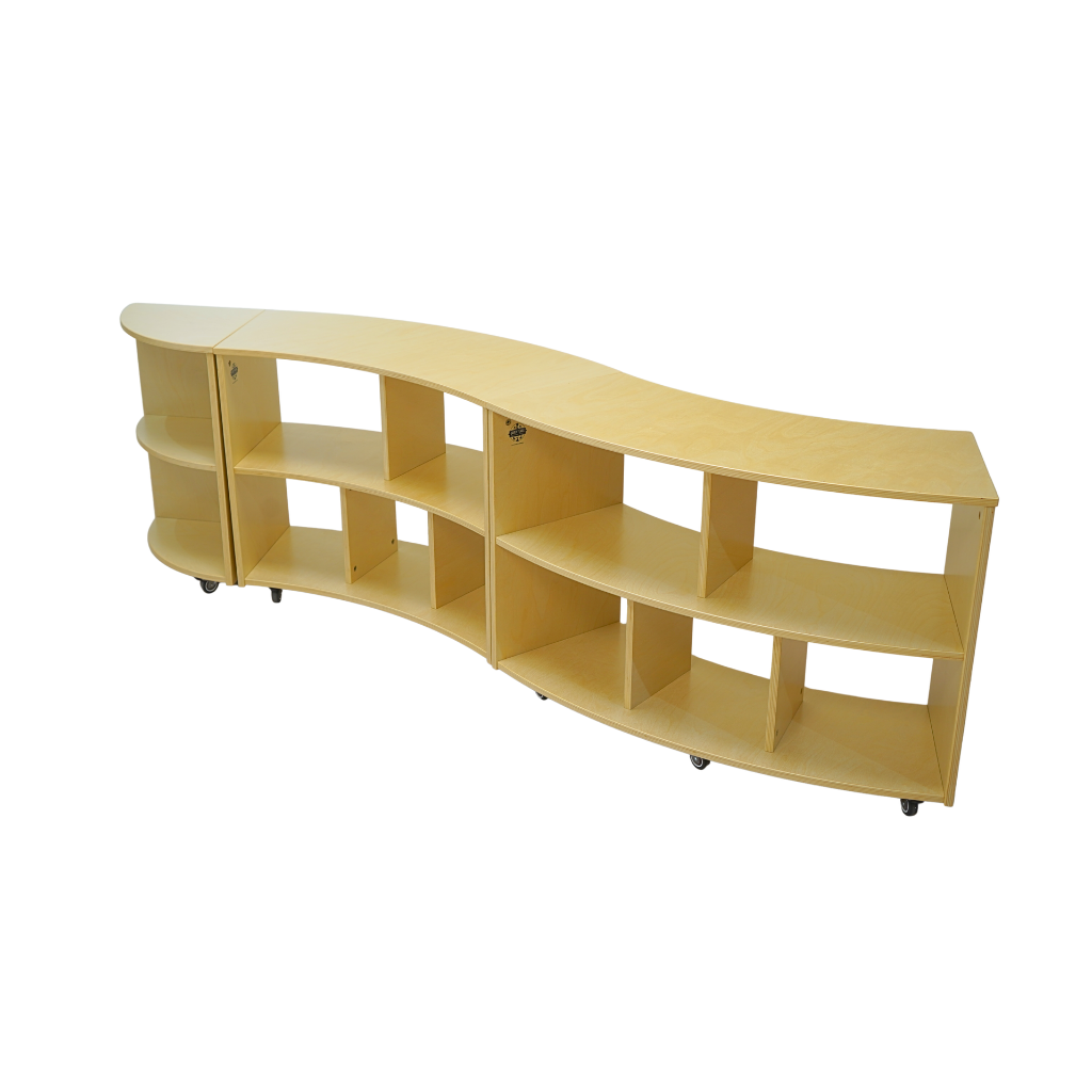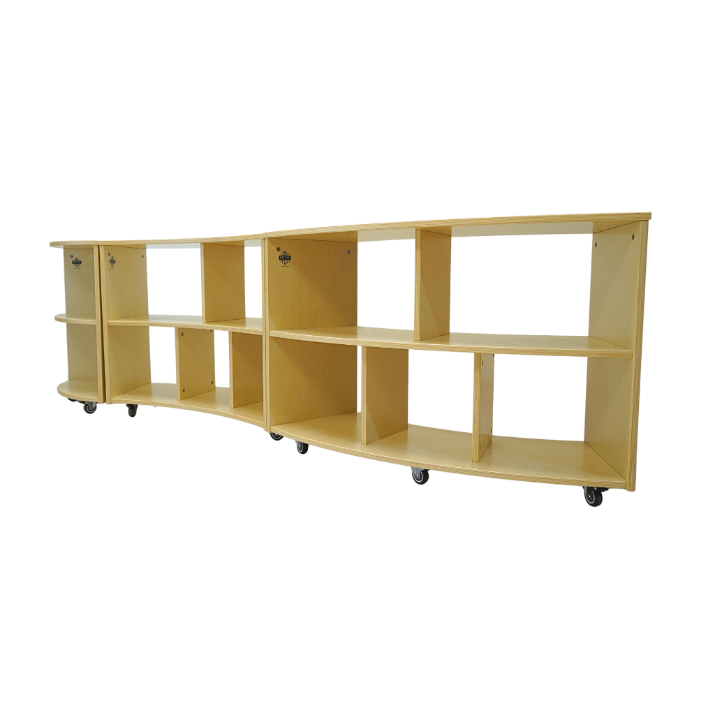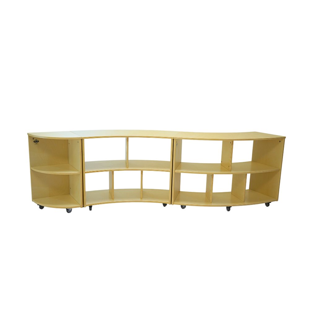 Crafted from durable 18mm birch plywood with a child-safe clear finish, this modular unit combines strength and natural beauty. Its curved design creates gentle boundaries that support zoning without harsh lines, helping to establish calm, purposeful play areas.