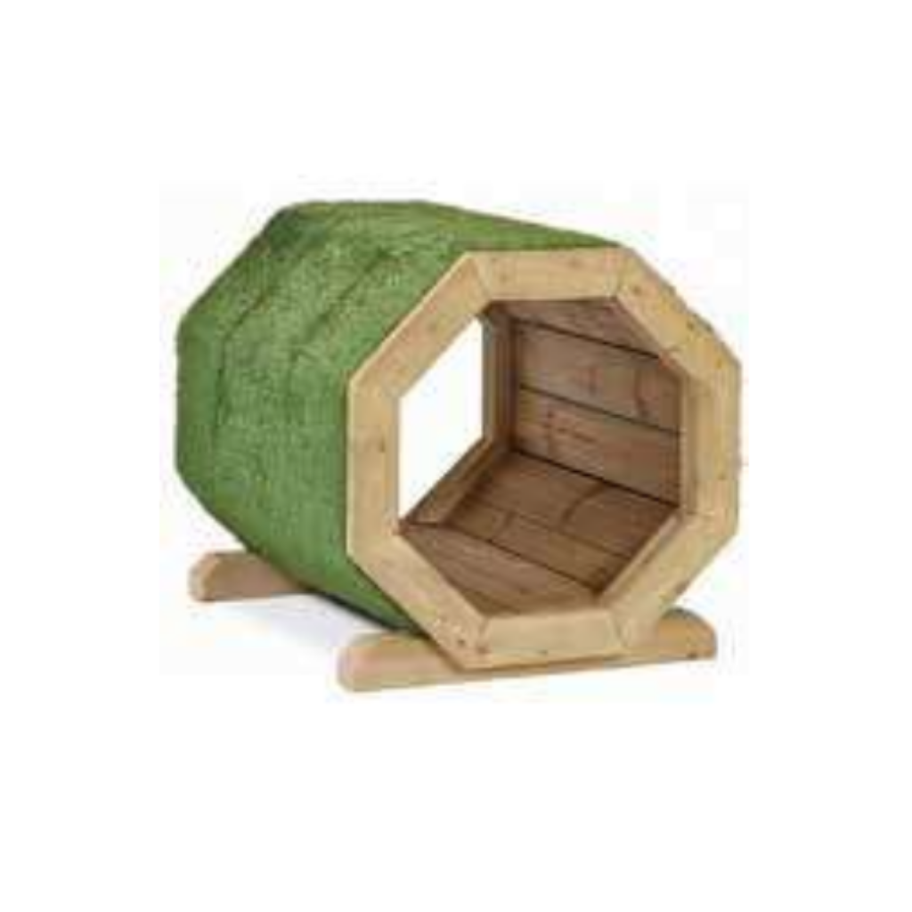 A sturdy timber crawl tunnel wrapped in artificial grass for a natural, outdoor-friendly look. Encourages gross-motor development, imaginative play and safe hide-and-seek exploration. Suitable for gardens and early learning outdoor spaces. Dimensions: H82 x W115 x D79.5cm