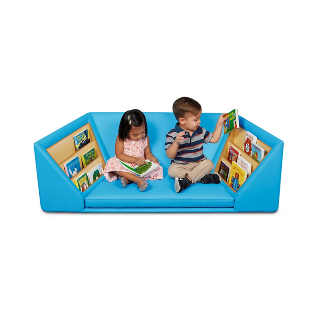 Ideal for toddler rooms, reading corners and wellbeing spaces, this piece combines soft play comfort with practical literacy storage in a single, inviting unit.